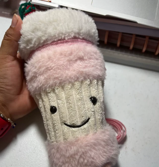 "Didn't think I needed a plush coffee bag until I saw this I wear it all the time IT's my favorite!"
